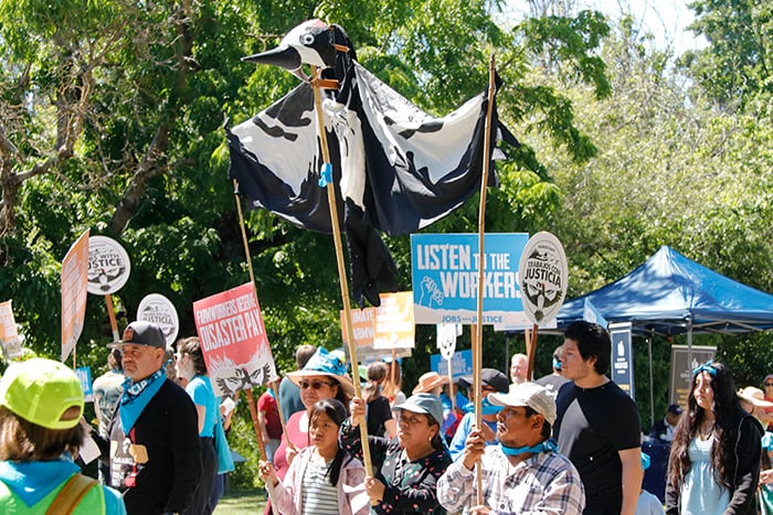 They’re also rallying for disaster pay — aka, “extra pay for work done during dangerous conditions and compensation for lost wages during disasters.”