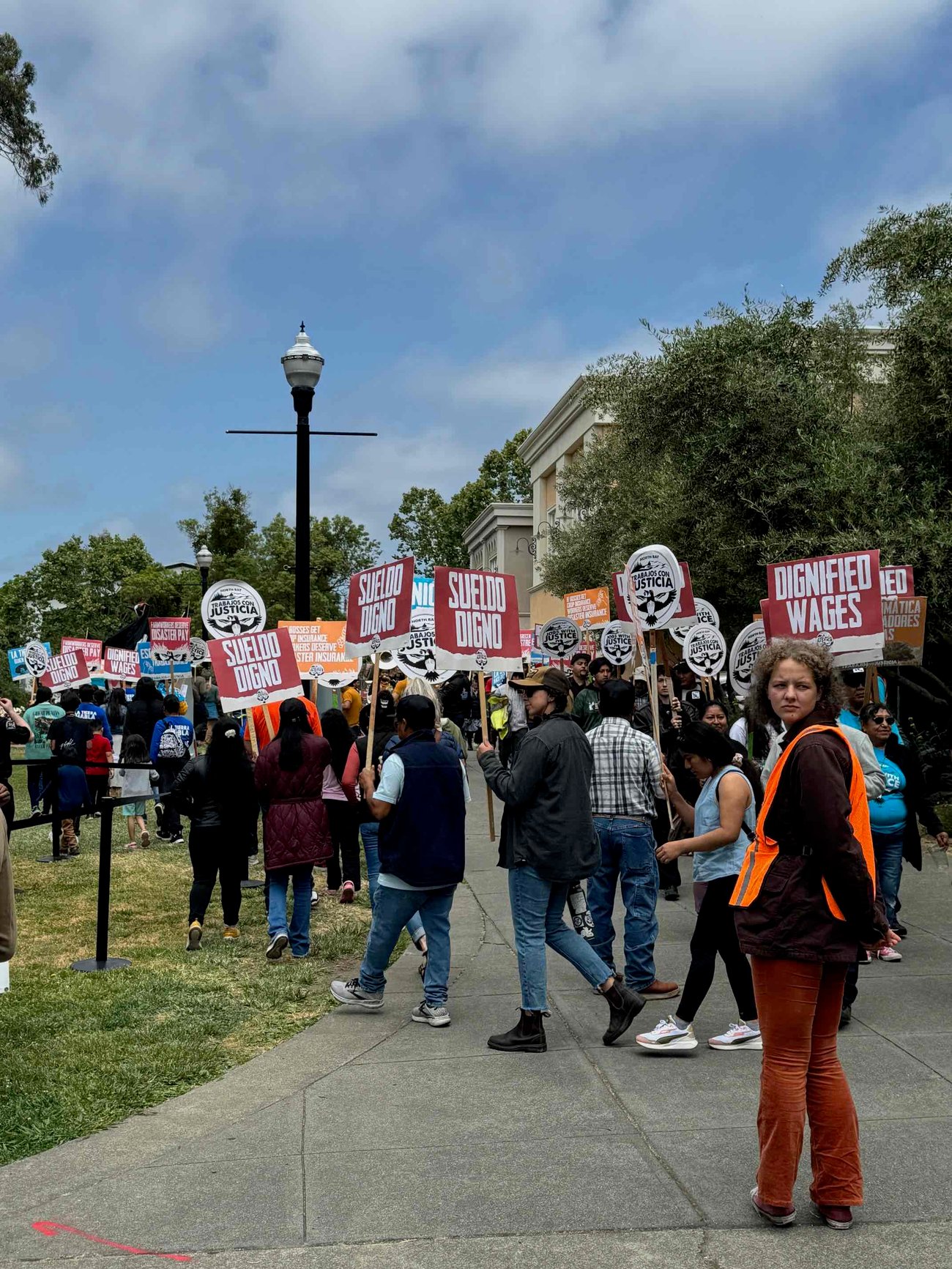 Organizers said they expected more than 500 protesters to swarm downtown Healdsburg this afternoon. They told the San Francisco Chronicle that this will be the largest protest ever organized by North Bay Jobs With Justice, “with turnout expected to be double the size of past marches.”