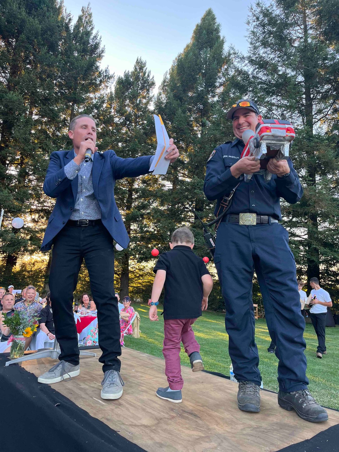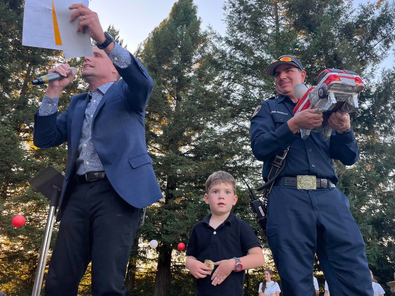 Before night’s end, more than one event cohost and audience member would point out that this hooligan running circles around the Trentadue lawn was the same guy recently entrusted with the role of California governor for a single day — the third of July — while Gov. Newsom was politicking in D.C. and the lieutenant governor was out of town for a wedding and a funeral. Our boy Mike reportedly even signed a bill during that time — wildfire-related, of course.