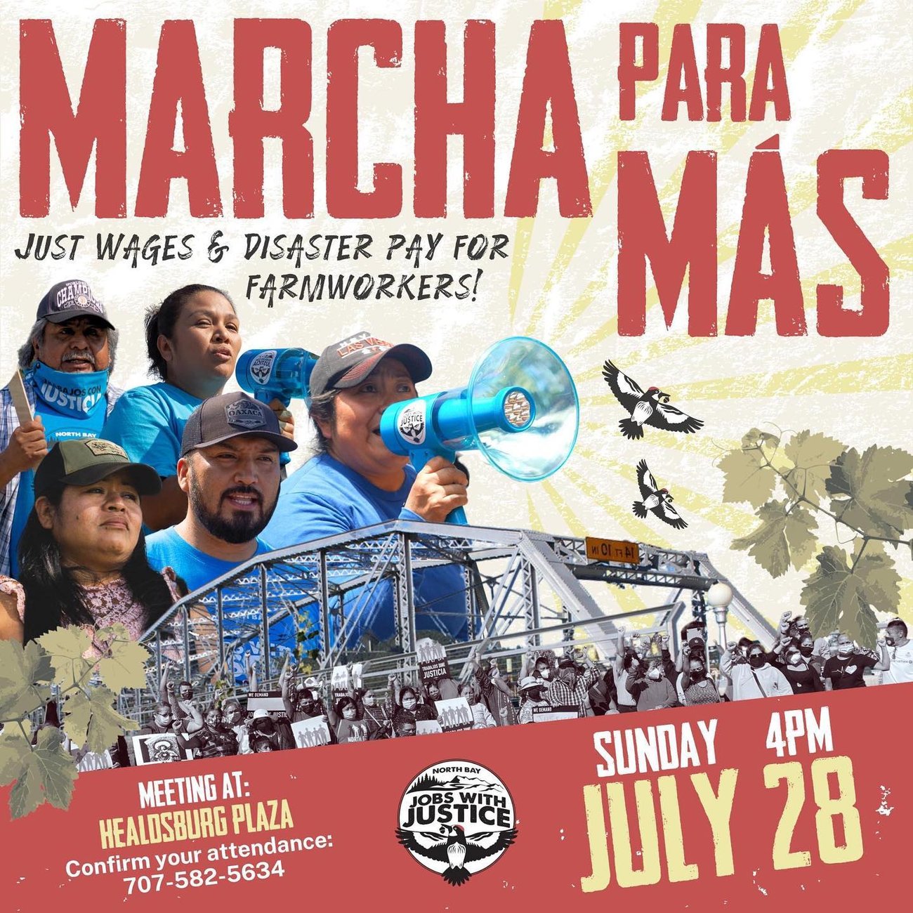 This week, we had record breaking heat waves and red flag warnings. Sonoma County has already seen wildfires & evacuation zones this summer — earlier than ever before! Ahead of this year’s wine grape harvest, farmworkers are rising up to demand Disaster Pay & a dignified wage of $25/hour!! Join the workers on the frontlines of climate change in a march through Healdsburg — the center of luxury “wine country.”